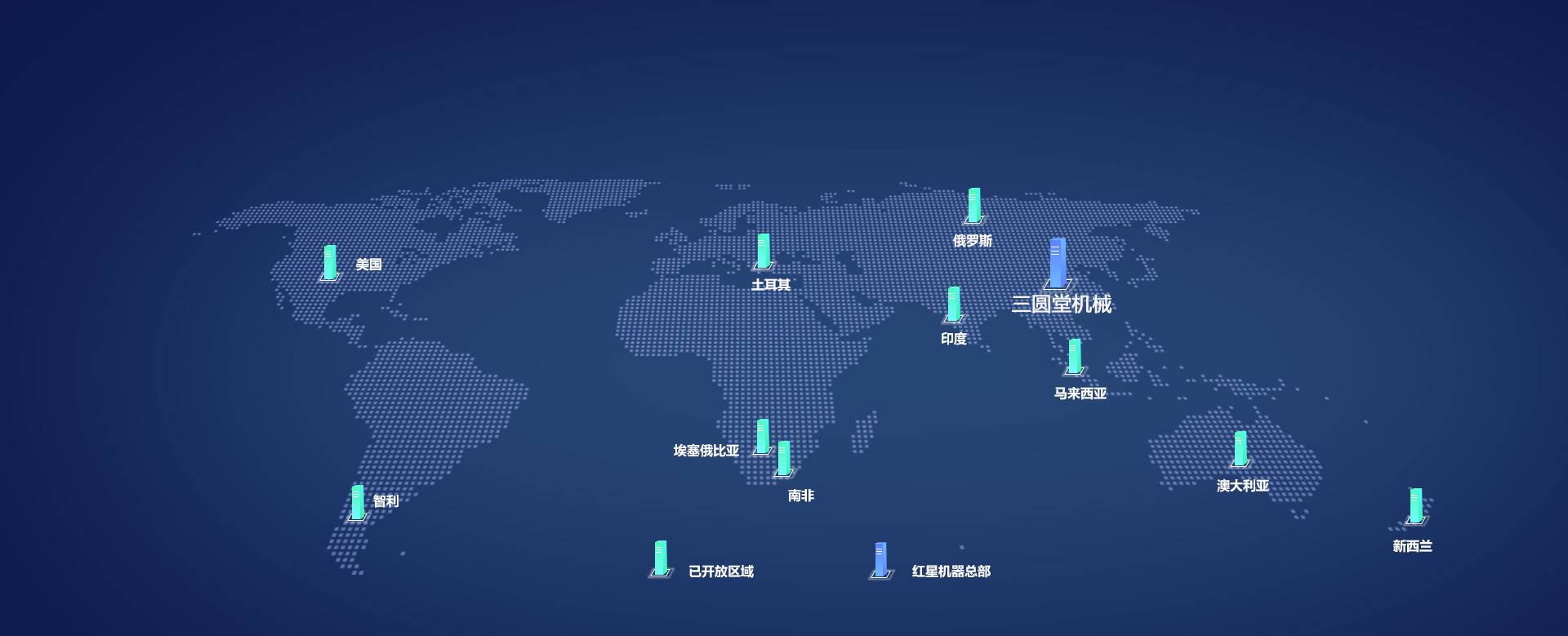 美國 智利 土耳其 埃塞俄比亞 南非 俄羅斯 印度 三圓堂 馬來西亞 澳大利亞 新西蘭 已開放區(qū)域 三圓堂機械