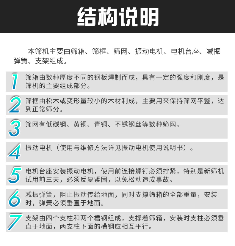 1、篩機(jī)設(shè)計,精巧和容易裝配,一人即可操作篩機(jī)。